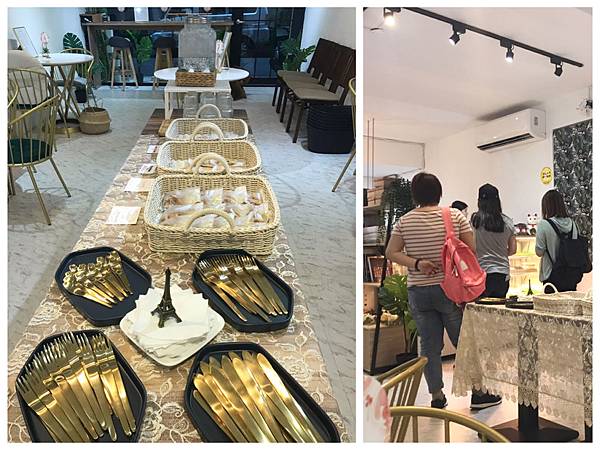 幸福肥不收取服務費,所以中島區擺放了超美的餐具,以及開水可自取!也有賣餅乾及小點心~