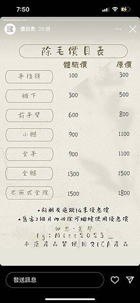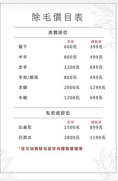 體驗價999+100膚麻 另外詢問腋下除毛體驗價388
