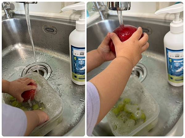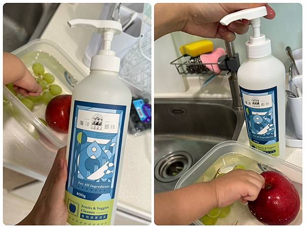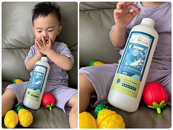 大寶看久了也知道這罐就是洗蔬果的唷~