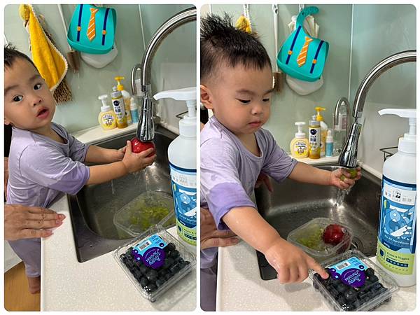 小幫手還想開藍莓來洗勒...