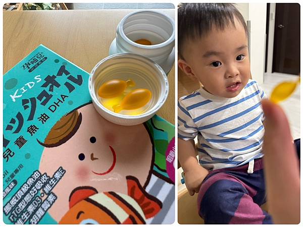 看到媽媽拿出亮橙色的小魚形狀膠囊,