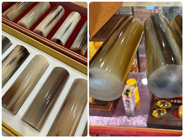 一刻印章店裡賣最好的分別是:赤牛角、浮動水晶、珍珠牙及檀木。
