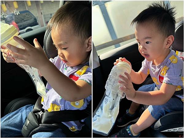 會拿奶瓶的寶寶,就能自己握著喝不用大人輔助,