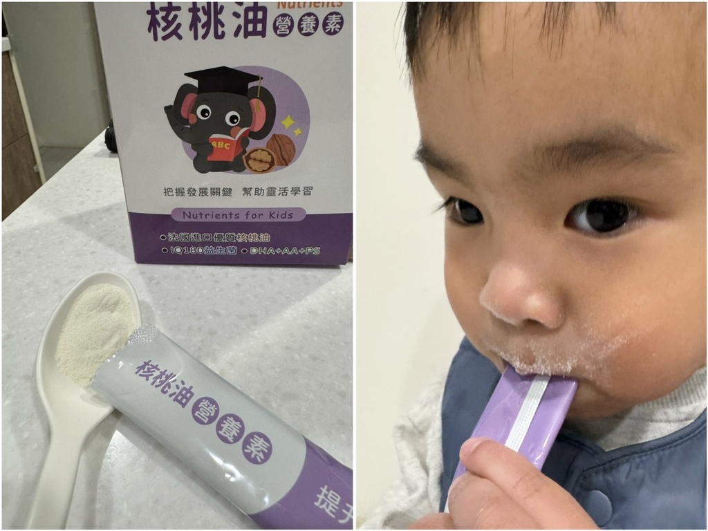 自己上網查才知道:核桃油中的Omega-6及Omega-3比例與母乳相近,有利於寶寶吸收,且含有豐富磷脂,是寶寶成長中重要營養成分之一!