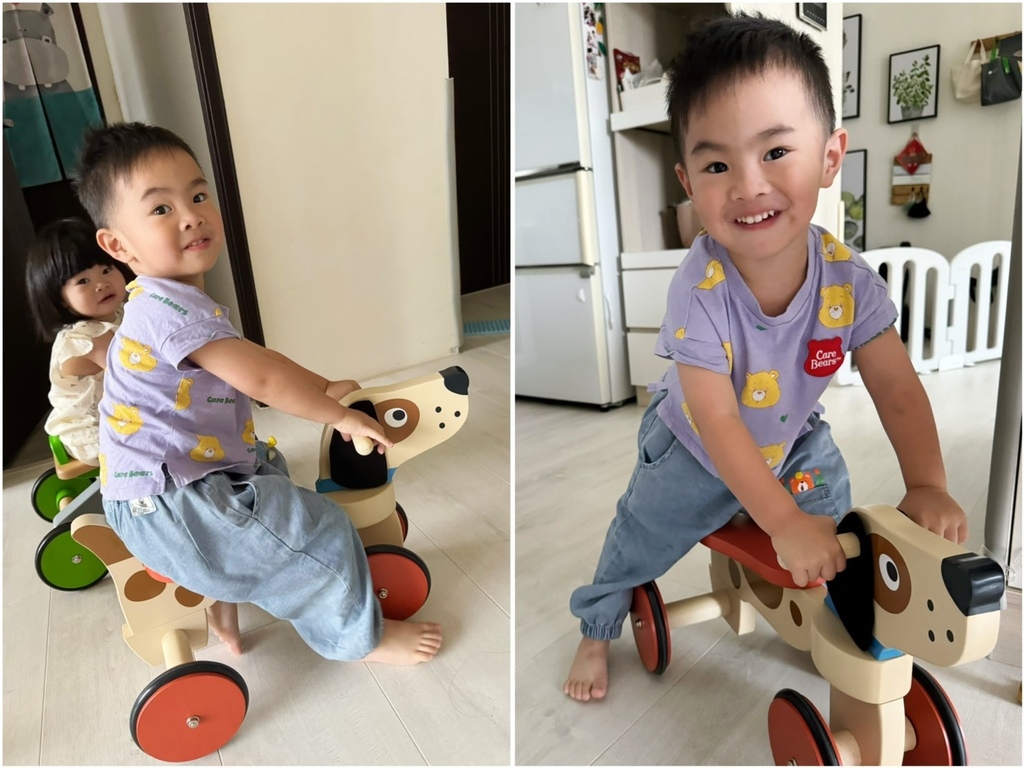 而 Mentari 米格魯滑步車,就是大寶自己看圖選的愛車!