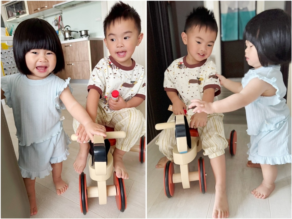 兄妹倆看到 Mentari 米格魯滑步車,瞬間遺忘舊的嚕嚕車....