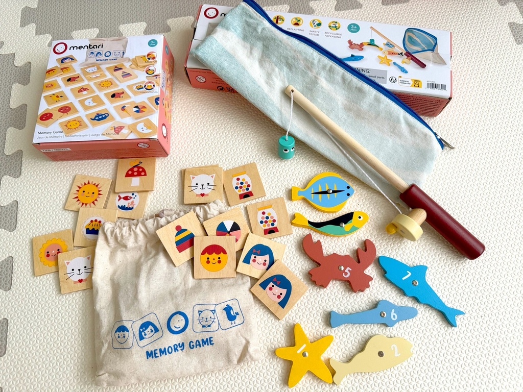 此時 Mentari 123釣魚趣、 Mentari 記憶配對遊戲組就能讓孩子玩上好一陣子。